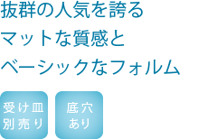 磁器と陶器の中間的な性質であるストーンウェア素材は、比較的軽量でありながらも強度があり、陶磁器に見られる表面のヒビ割れが起こりにくい性質を持っています。