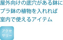 屋外向けの底穴がある鉢や防水ではない鉢カバーなどの内側に入れ、この中にプラ鉢に入った植物を入れることで室内にてお使いいただけます。目立ちにくいように、半透明素材にし、更に高さも低めにつくりました。