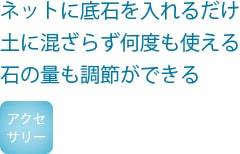 リサイクルネットに鉢底石を入れて鉢底に敷くことで植え替え時に用土とまざらず繰り返し使えます。